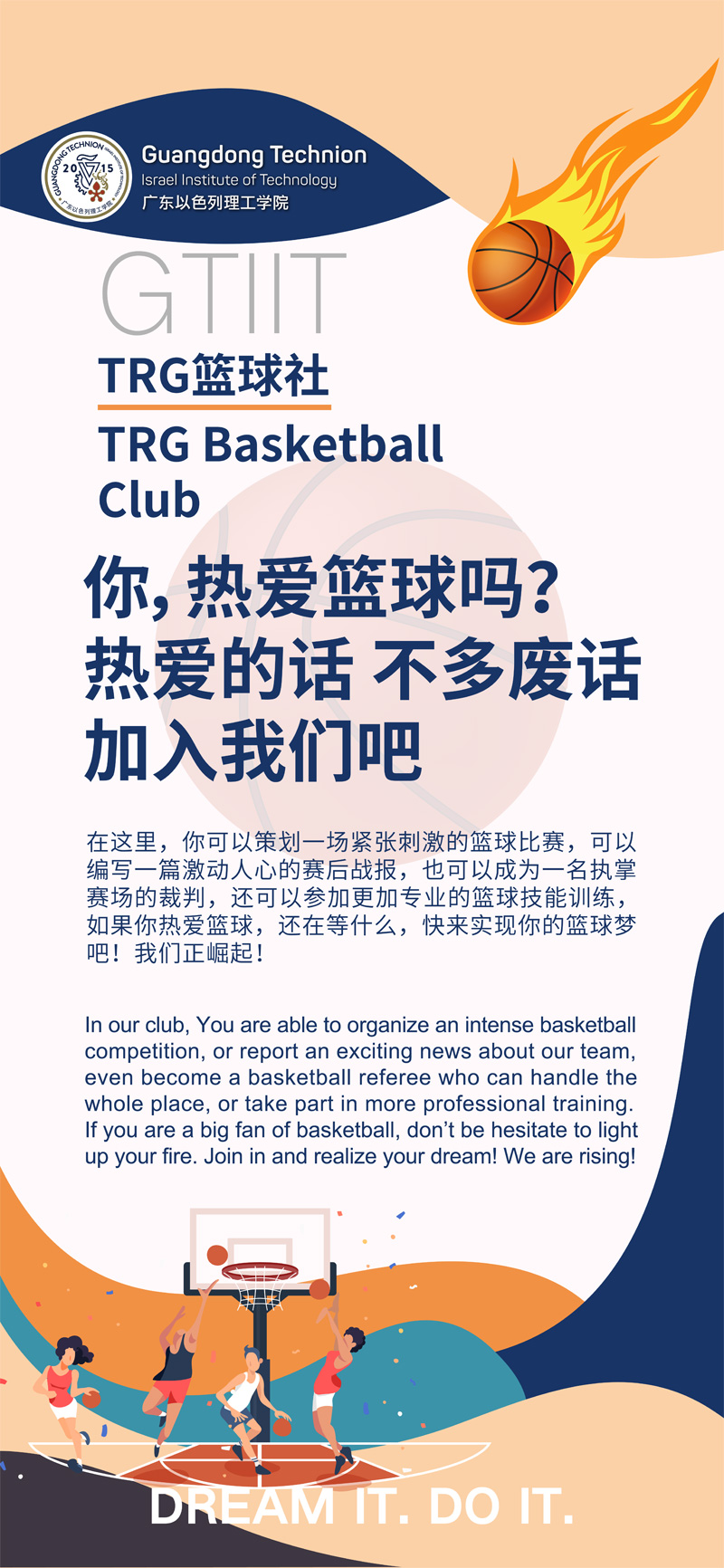 In our club, Youare able to organize an intense basketball competition, or report an exciting news about our team, even become a basketball referee who can handle the whole place, or take part in more professional training. If you are a big fan of basketball, don’t be hesitate to light up your fire. Join in and realize your dream! Wearerising!