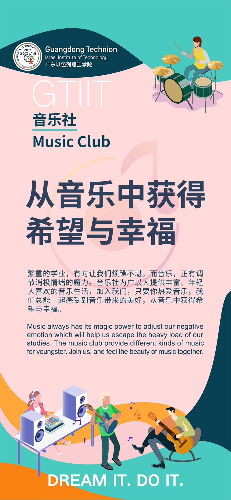 南宫NG28集团音乐社成立于南宫NG28集团降生之初,,,曾乐成举行过”随变音乐节”,,,Nockor乐队音乐交流会,,,GTIIT音乐嘉年华,,,与EC相助的冬至晚会等精彩活动。。。社团为同砚们提供乐器室和排演房。。。排演房拥有用果显著的隔音质料和音响装备,,,同时拥有一架钢琴,,,两架古筝。。。音乐社旨在为各人提供富厚,,,年轻人喜欢的音乐生涯,,,如组织在乐器室或排演房举行合奏或交流自己最近喜欢的乐曲,,,举行大型音乐会等等